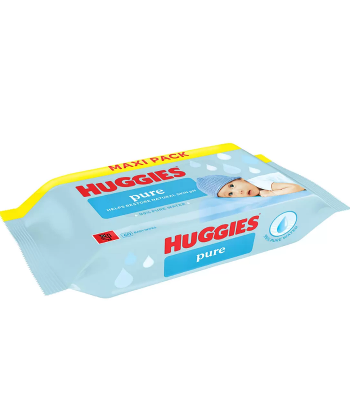 Huggies Pure Baby Wet Wipes 60 Pcs Pack (Maxi Pack)