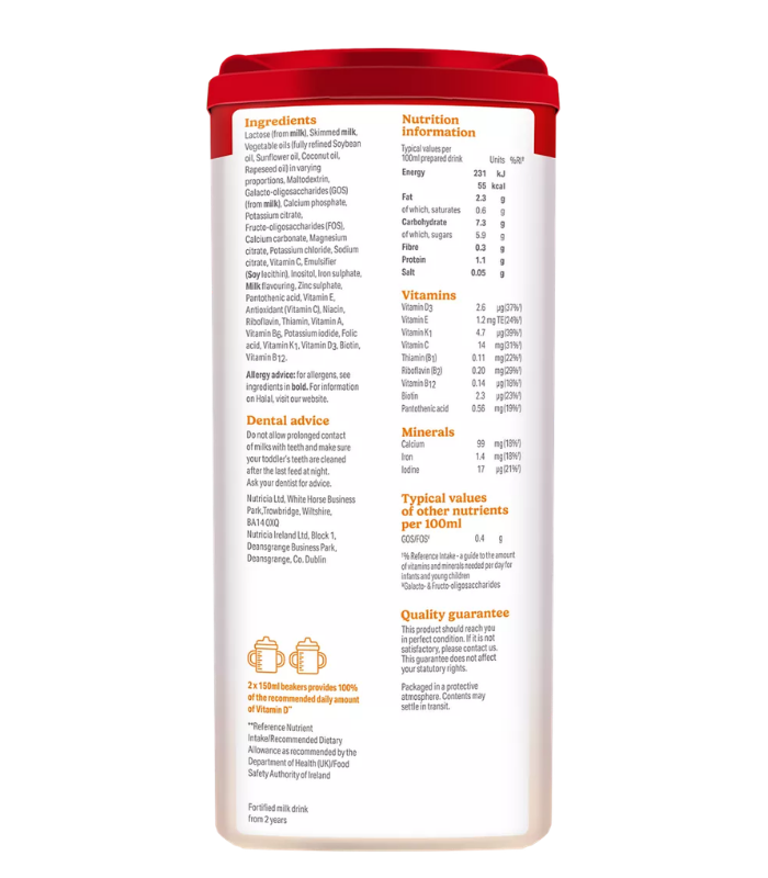 Do not allow prolonged contact of milks with teeth and make sure your toddler’s teeth are cleaned after the last feed at night. Ask your dentist for advice.