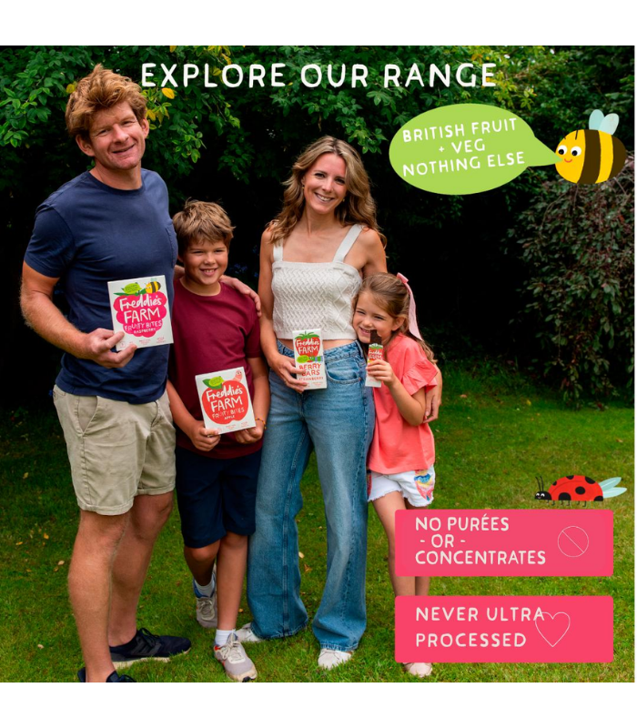 We started making these fruity bites for our children – using fresh, whole produce picked from British farms, not purées or concentrates like the big brands. We even patented our special method, which helps keep things closer to how nature made them (and keeps free sugars lower too).