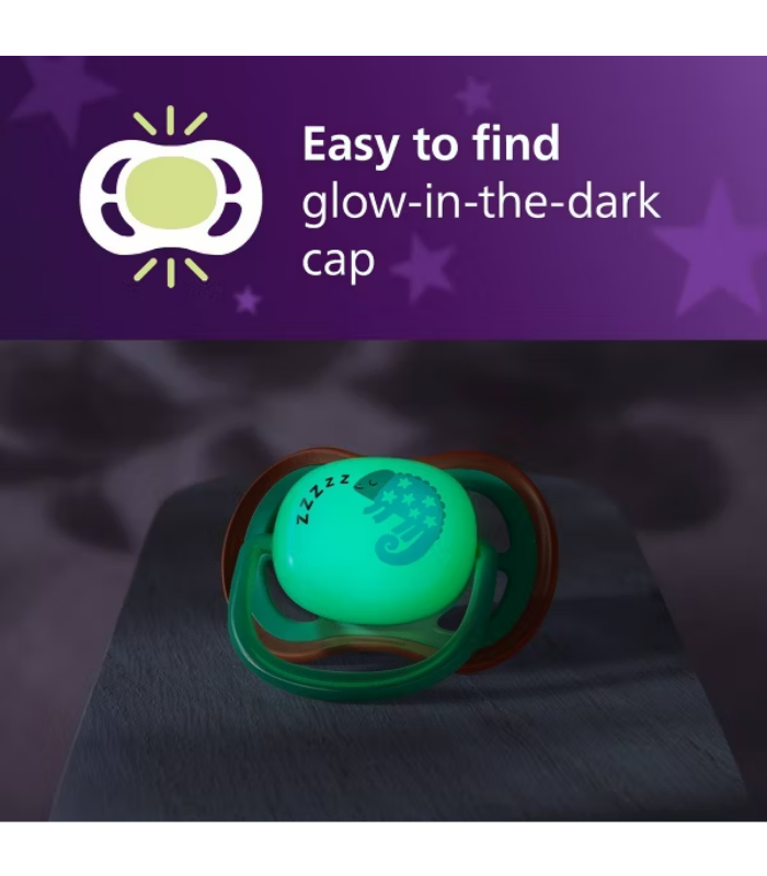 Soothing and breathable with large airholes. 9 out of 10 parents agree: Philips Avent ultra air soothers are comfortable for my little one.** Glow-in-the-dark version means comfort and relief are always easy to find. Now 80% plant-based.*